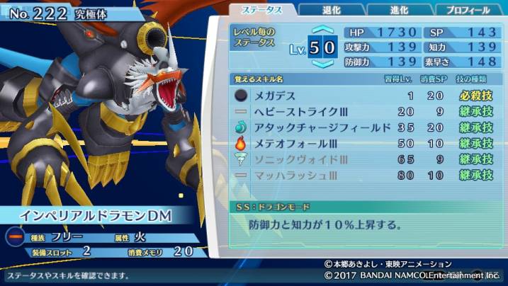 1体でも高性能だが、3体を同じインペリアルドラモンDMにする事でSSが相乗効果を発揮。