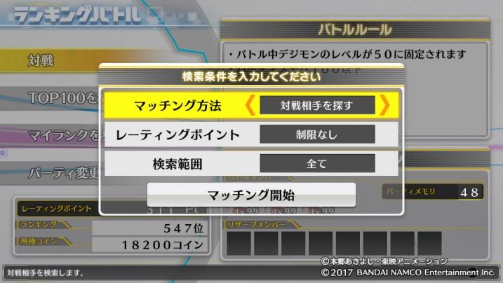 対戦相手のレーティングポイントが自分より上か自分に近い相手を選択可能。