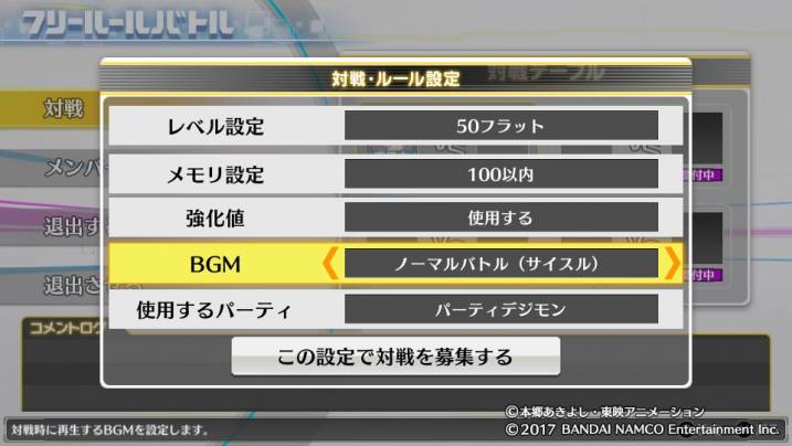 強化値、装備品は反映されますがデジモンのレベルは全て50に固定されます。