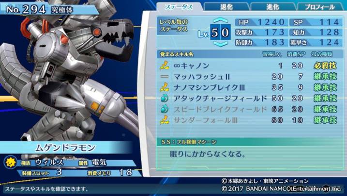 メモリ18の中ではダークドラモンなどよりも総合ステータスが高めに設定されている。