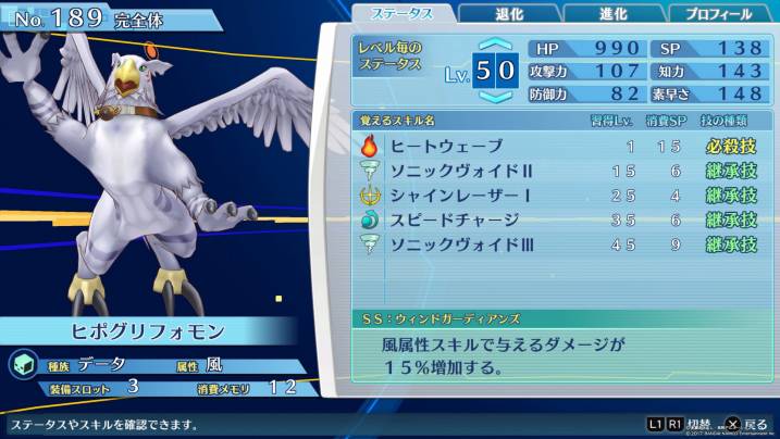 | メルクリモン | サウザンドフィストを強化。ヒポグリフォモンも素早さをさらに上昇させられる。 |