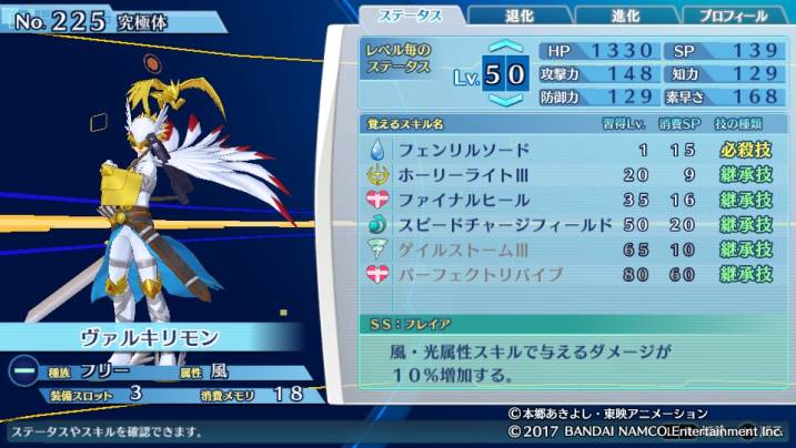 | ディアナモン | 光属性技+20%に加え、フェンリルソードの威力もアップする。 |
