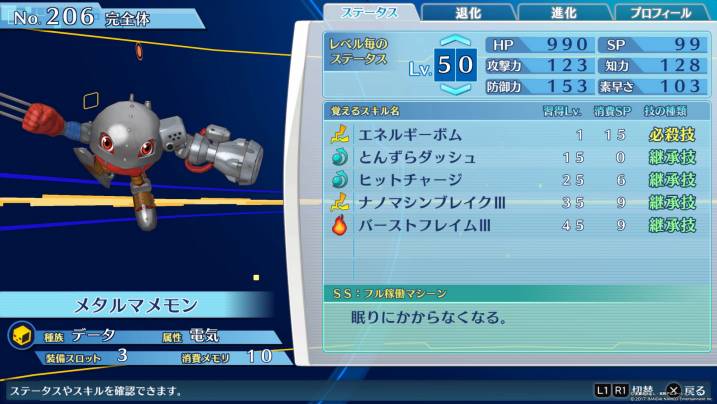 スロットを使わなくても知力振りだけでエアロブイドラモンを一撃で倒すことができる。