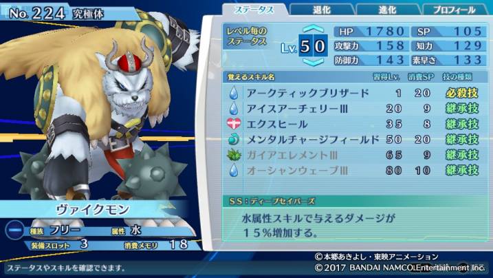 SS『ディープセイバーズ』は水属性技の威力が15%上昇する。