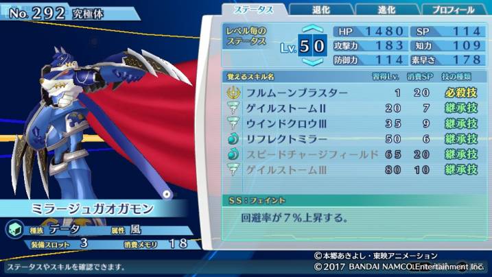 ジエスモンと違う所は常時回避率が上がっているという点。リバイブを絡めるなら流石にジエスモンの方が強いが、こちらはある程度体力を保持しながら戦う事でプレッシャーを掛けられる。