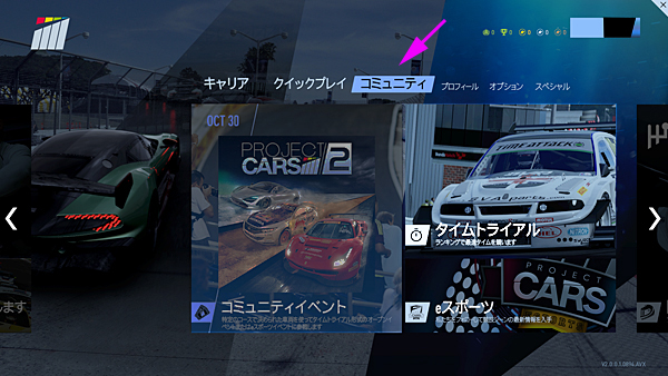 やり方は、まず[コミュニティ]タブで[タイムトライアル]を選択します。