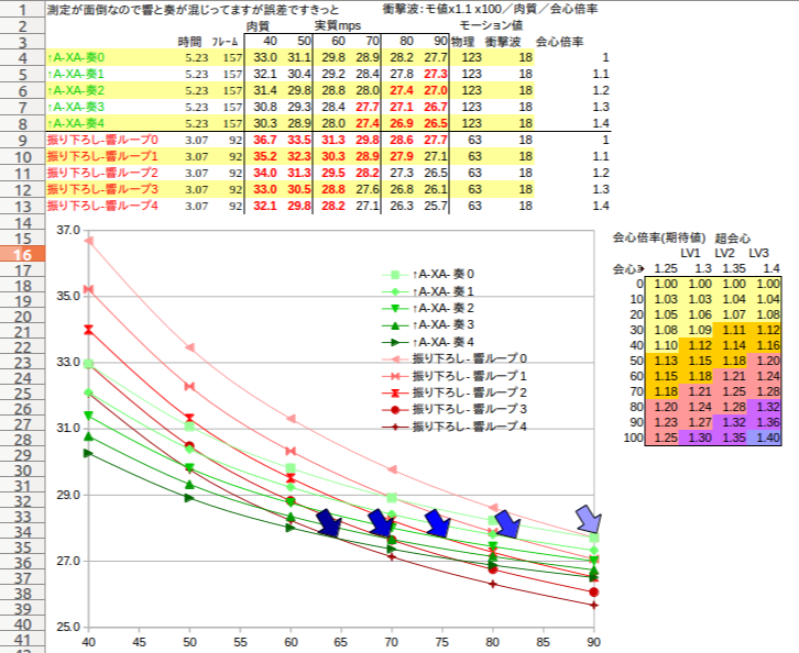 | 叩きつけ | 6→46 | 5→10 | 10→40 | 2→3 | 短縮モーション時14→46 |