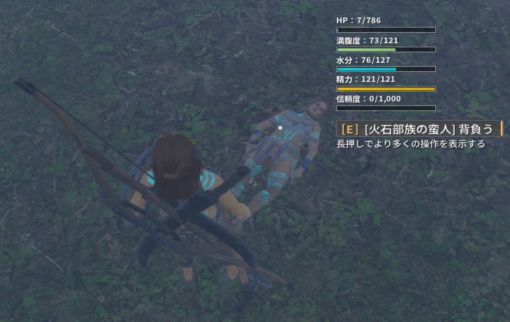 - [E]キーで蛮人を担いでベッドまで連れていき、寝かせる