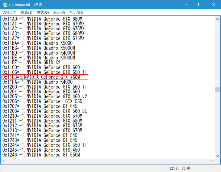 自分が使っているGPUをGTX760M(デバイスIDは11E3)とした場合の例です。