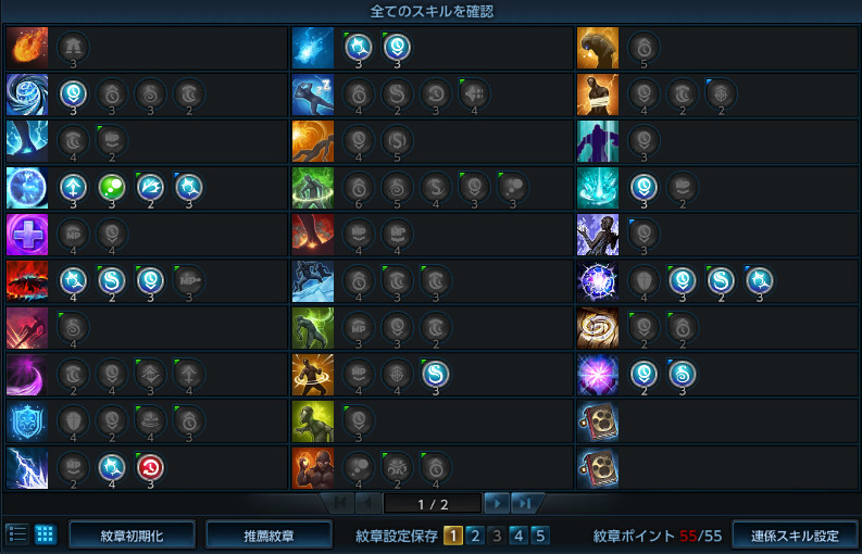 - 講座のスキル回し用を想定した必須紋章の一覧です。