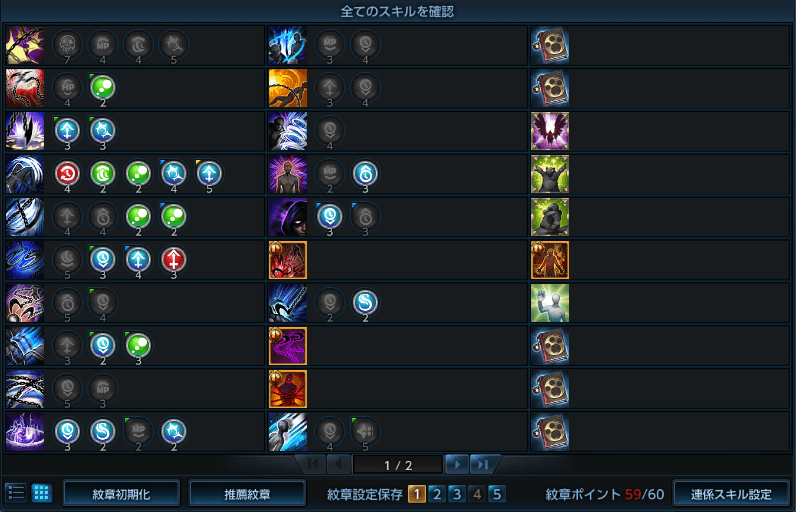 - 講座のスキル回し用を想定した必須紋章の一覧です。