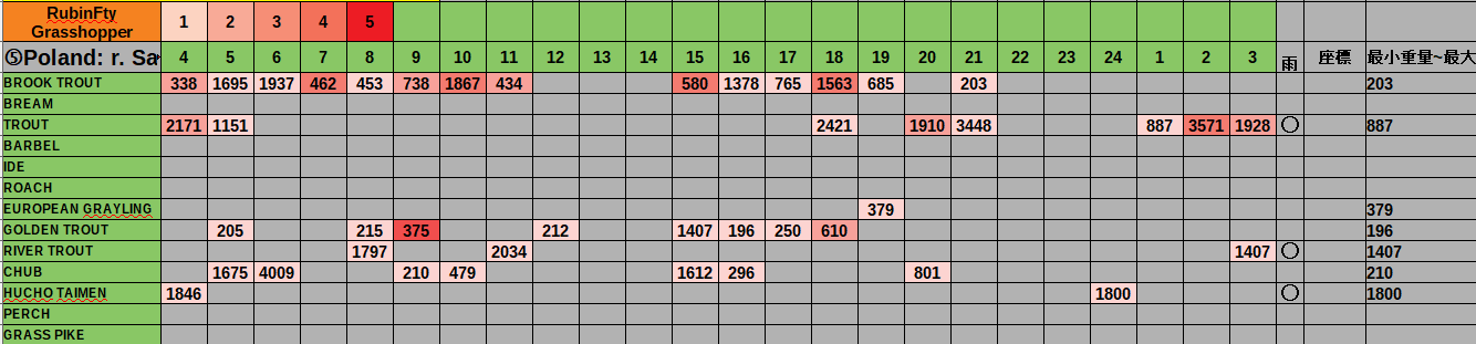 Poland/r. Sanの釣果表 のバックアップ(No.2)