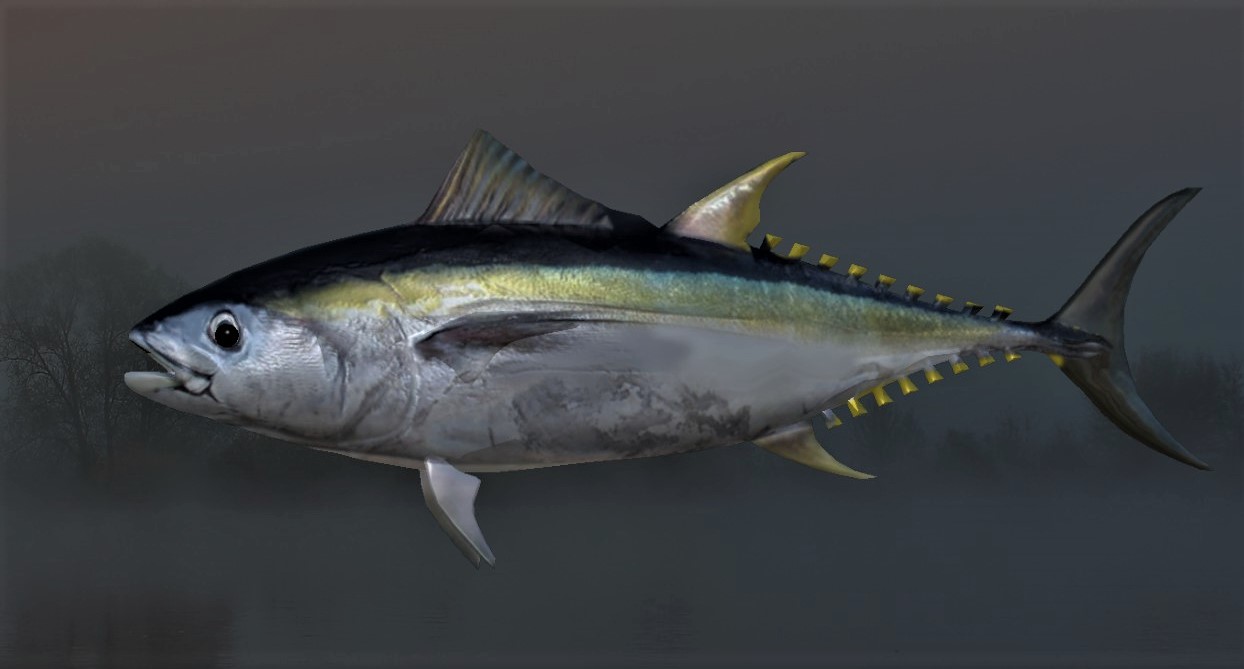 - マグロとしては小型ですが、この種は最大重量60キログラム、最長2メートルにもなります。