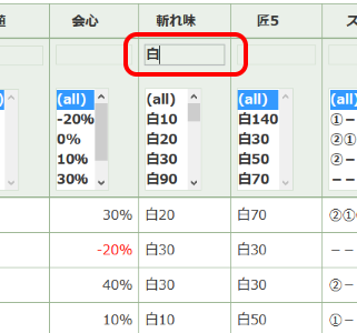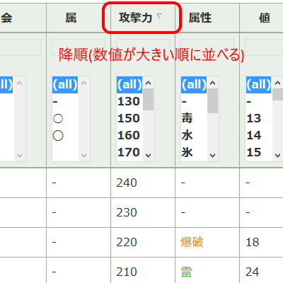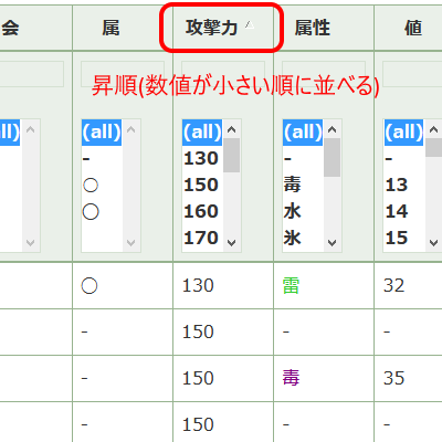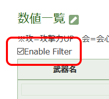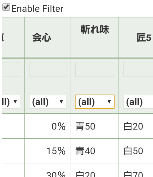 「Enable Filter」オプションを持つ一覧表は、項目をソート(並べ替え)およびフィルタリング(絞り込み)することができます。