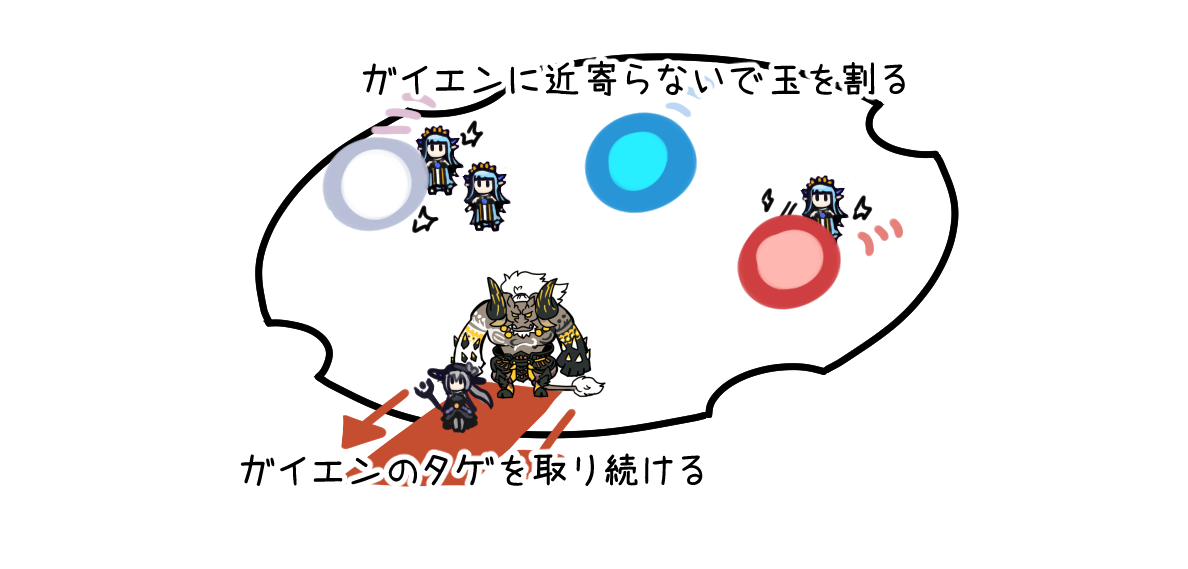ガイエンのタゲがうつってガイエン大暴れボールとりたい放題ボーナスタイムになるので気を付けてね